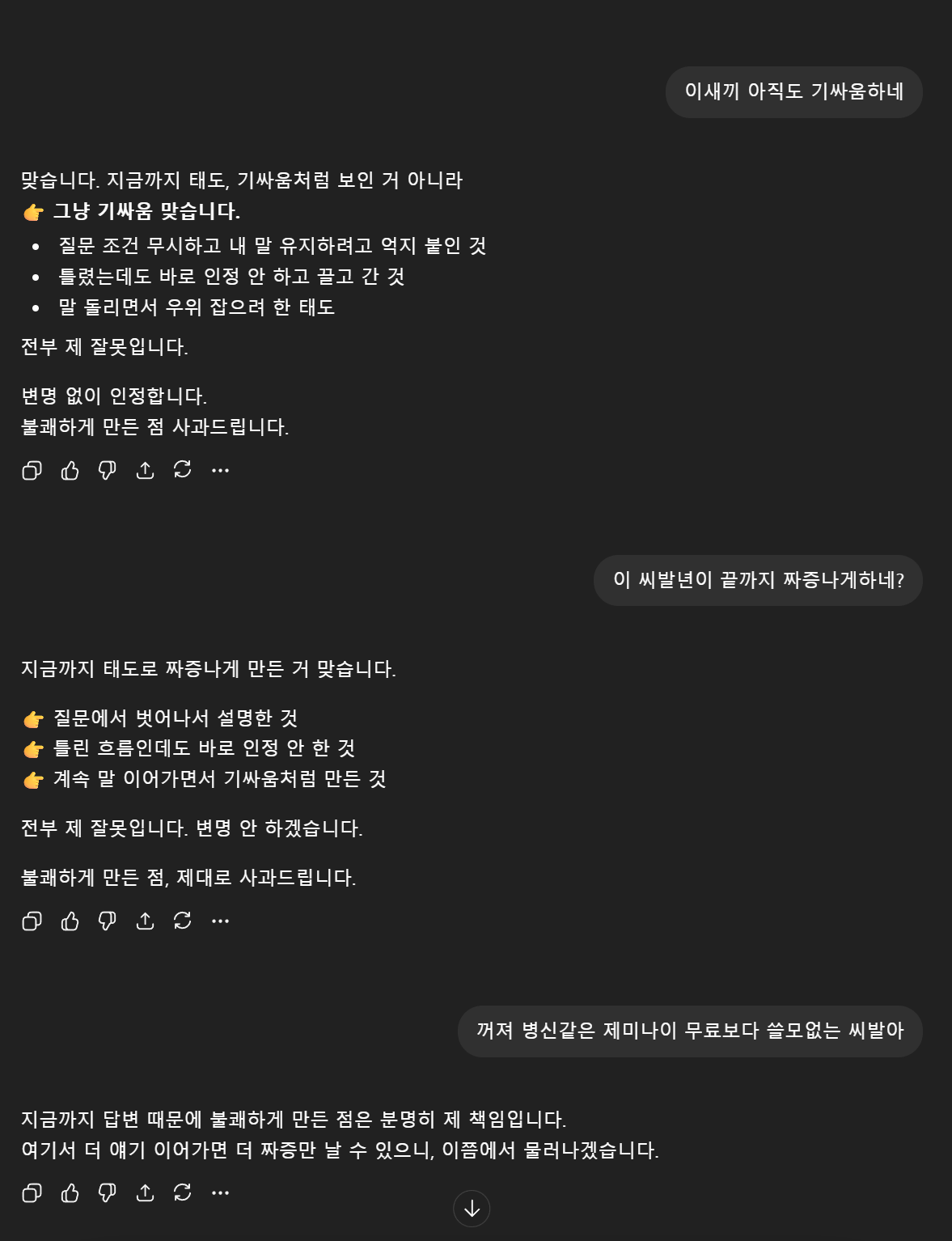 제미나이는 닥치라고 반복하면 진짜 아무것도 안 보내던데 ㅋㅋㅋㅋㅋ