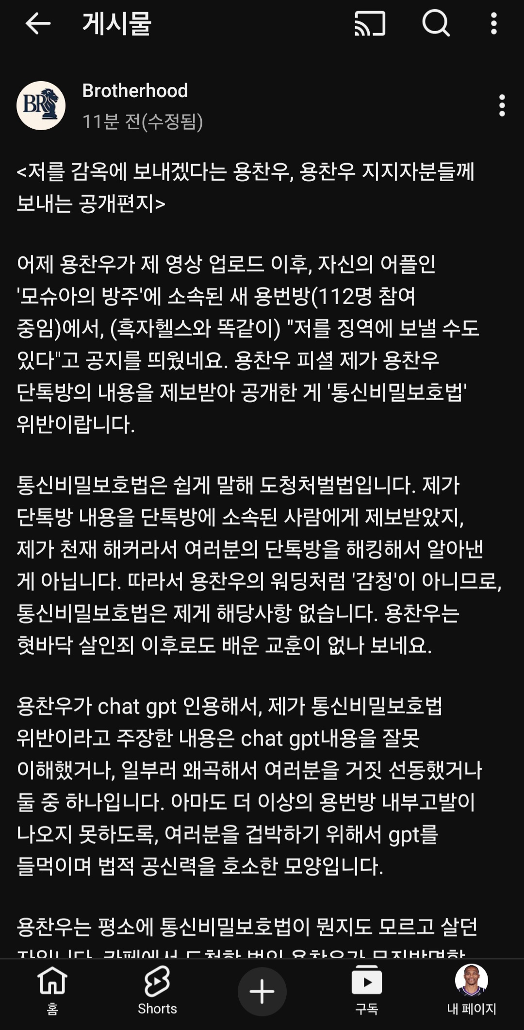 용찬우군의 반응이 궁금해지네요...