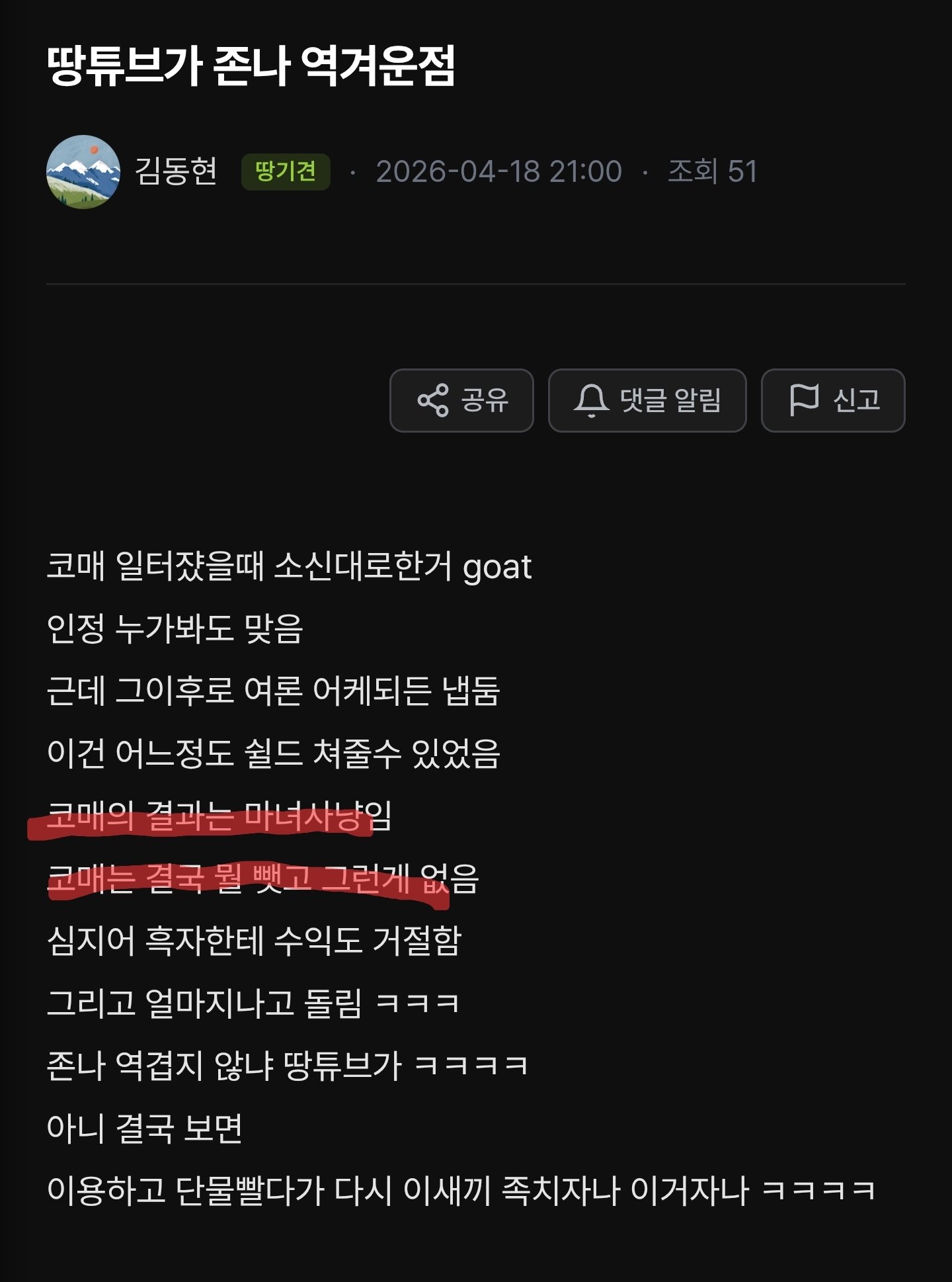저새끼 코매 본인 아니고서야 말이 안 되는데