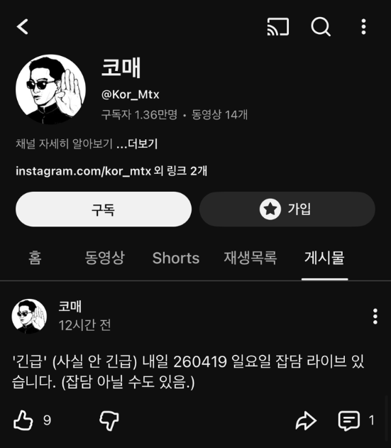 김동현 닉 와서 설쳐도 코매라고 계속 불러줘야함