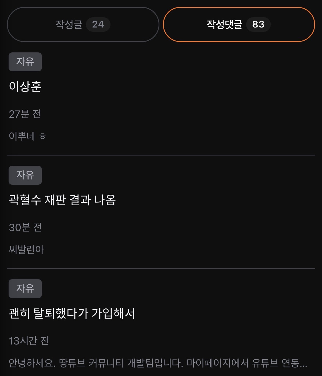 자유 규언씨 그거 아십니까? diagra…땅기견 · 2026-04-01 10:57 · 조회 86 공유 카카오톡 페이스북 X 링크 복사 자유 게시판 비밀 게시물이나 익명 게시물에댓글단거 규 댓글 목록에 보임 ㅋㅋㅋ이거 안보이게 처리해야 할 것 같은데 첨부파일 📎 IMG_0990.jpeg (92 KB · 다운로드 0) 1 0 다음글 김어준 이전글 애미 씨발 댓글 10 🔥 HOT 댓글 HOT 미시이경실땅기견 2일 전 2 내가 쓴 글인데 땅튜브 칭찬했더니 뜬금없이 씨발년아라고 욕함 HOT 땅튜브대장님 2일 전 1 오케이 HOT a bc땅기견 2일 전 1 씨발년아는 뭐야ㅋㅋㅋㅋㅋㅋㅋㅋㅋㅋㅋㅋ HOT 땅튜브대장님 2일 전 오케이 더보기 답글 1 0 HOT a bc땅기견 2일 전 씨발년아는 뭐야ㅋㅋㅋㅋㅋㅋㅋㅋㅋㅋㅋㅋ 더보기 답글 1 0 ↳ djmh땅기견 2일 전 ㅋㅋㅋㅋ개웃기노 비밀글 혐짤인가봄 더보기 답글 1 0 ↳ HOT 미시이경실땅기견 2일 전 내가 쓴 글인데 땅튜브 칭찬했더니 뜬금없이 씨발년아라고 욕함 더보기 답글 2 0 ↳ 아가규땅기견 1일 전 거짓말일것 같았지만 찔렸어 (´﹃`) 더보기 답글 0 0 작성자 ↳ diagra…땅기견 2일 전 인성보소 ㅠㅠㅠ 더보기 답글 1 0 ↳ 미시이경실땅기견 2일 전 왜 욕하냐고 했더니 후원도 안하는 개 버러지새끼 칭찬 필요없다고 썼다가 지우더라.. 더보기 답글 1 0 ↳ 아가규땅기견 2일 전 후원 안해서 미안해... 넘나 약소하지만 땅기견으로 계속 조용히 구독할게(´꒦ິ ꒳ ꒦ີ`) 더보기 답글 0 0 ↳ 미시이경실땅기견 1일 전 구라야 더보기 답글 1 0 ↳ 아가규땅기견 2일 전 말넘심 (꒦ິД꒦ີ) 더보기 답글 0 0 님에게 답글 작성 중 취소 비밀 댓글 작성
