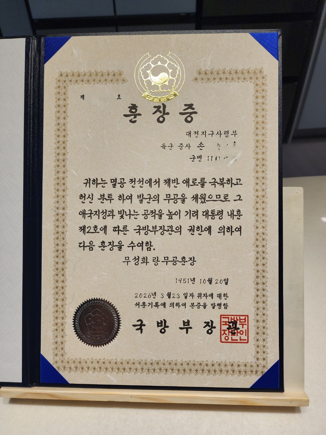 할아버지 훈장 보관하고 있다고 보내준다고 하더니 일주일도 안돼서 보내주더라.