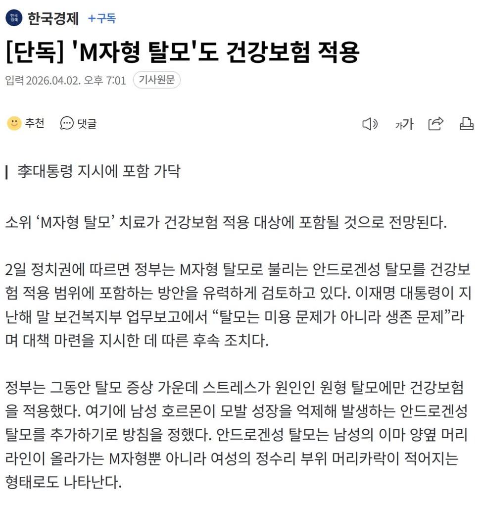 찢통령님 탈모셔서 탈모 감수성이 남다르심