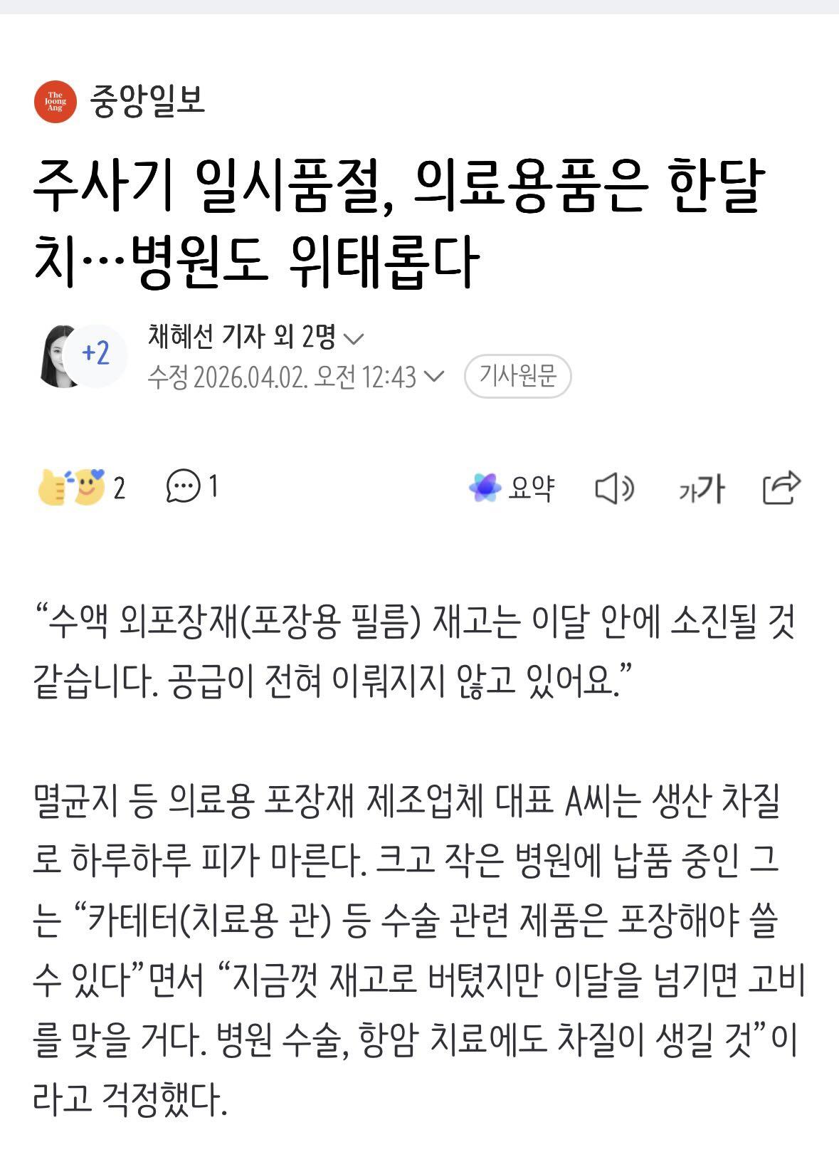 이제 ‘주사기 재사용 하면 안되나? 소독하면 되잖아’ 하시는거 아니냐.. 무섭다 -