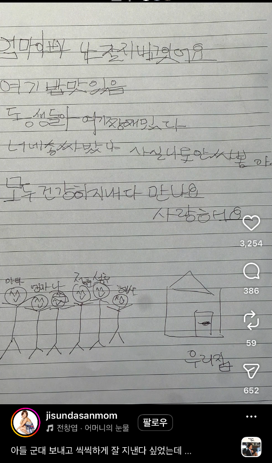 아줌마가 주접싸는건 맞는데 우리 훈련소에서 저런식으로 편지 쓰는거 유행했었는제