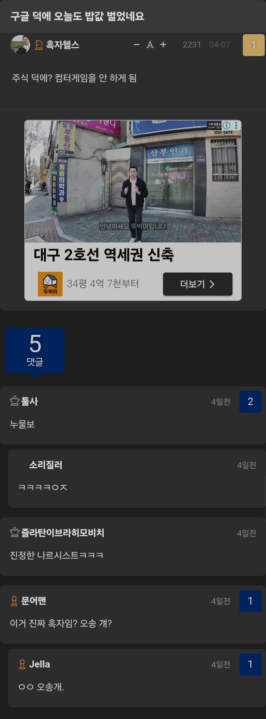 자유 NBA매니아에서도 돌림당하는 흑자헬스 근황 새우땅기견 · 2026-04-11 16:03 · 조회 123 공유 카카오톡 페이스북 X 링크 복사 3단봉의 위력은...흑구만이 알고있다+코매특근 오늘 이어서하는거 맞지? 제발... 첨부파일 📎 1000257237.jpg (312 KB · 다운로드 1) 5 0 다음글 나에게도 이런 행운이 이전글 살인허용 야차룰로 호옹이 기 꺽어줄 난쟁이 전사 모집 공고 댓글 12 🔥 HOT 댓글 HOT 땅튜브대장님 4일 전 9 ㅋㅋㅋㅋㅋ씨발 이미지 ㅈ창났노 ㅋㅋ 휘유~~~ HOT 카소벤형님 4일 전 3 신기하네!! nba매니아 좌배드림 같이 씹선비 사이튼데 저기서도 욕 먹네 HOT ㄹ 118.218.*.* 4일 전 2 언제죽냐 다이어그램 4일 전 사칭아니야? 이거 뭐 코매랑 왜 이렇게 똑같은거야 ㅋㅋㅋㅋㅋㅋ 씨다른 형제나 배다른 형제 아니고선 말이 되냐? 더보기 답글 1 0 작성자 ↳ 새우땅기견 4일 전 놀랍게도 사칭아니라 찐임..몇개 더 추가했음 더보기 답글 1 0 a bc땅기견 4일 전 황철순이나 땅이같은 사람이 "근비대는 쓸모없어요. 전쟁나가면 다 죽어요" 이러면 용찬우처럼 3년넘게 돌렸겠냐 더보기 답글 1 0 ㄹ HOT ㄹ 118.218.*.* 4일 전 언제죽냐 더보기 답글 2 0 HOT 땅튜브대장님 4일 전 ㅋㅋㅋㅋㅋ씨발 이미지 ㅈ창났노 ㅋㅋ 휘유~~~ 더보기 답글 9 0 HOT 카소벤형님 4일 전 신기하네!! nba매니아 좌배드림 같이 씹선비 사이튼데 저기서도 욕 먹네 더보기 답글 3 0 Westbr…땅기견 4일 전 흑자님...nba 그만말해주세요... 더보기 답글 2 0 흡혈기관차형님 4일 전 좆호구밥 딱갈이 다 됐노 ㅋㅋㅋ 더보기 답글 1 0 oN땅기견 4일 전 최신근황임?ㅋㅋㅋㅋㅋㅋㅋㅋ 더보기 답글 1 0 작성자 ↳ 새우땅기견 4일 전 어제 오늘임 ㅋㅋㅋㅋㅋㅋㅋㅋㅋㅋ 더보기 답글 2 0 ↳ oN땅기견 4일 전 ㅋㅋㅋㅋㅋㅋㅋㅋㅋㅋㅋㅋㅋㅋㅋㅋㅋ개창났네 더보기 답글 1 0 J C비밀친구 4일 전 소문 다났네 ㅋㅋㅋ 진짜 성형하고 개명해야될듯 더보기 답글 1 0 님에게 답글 작성 중 취소 비밀 댓글 작성