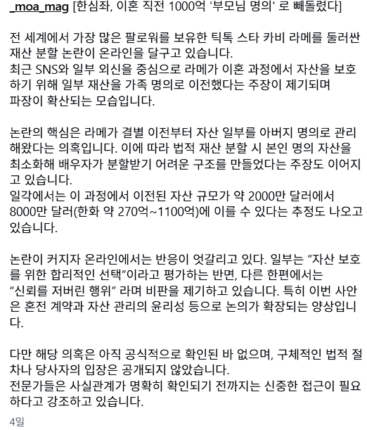 재산분할 전에 1000억 정도 본인 아버지 명의로 등록해서 방어함