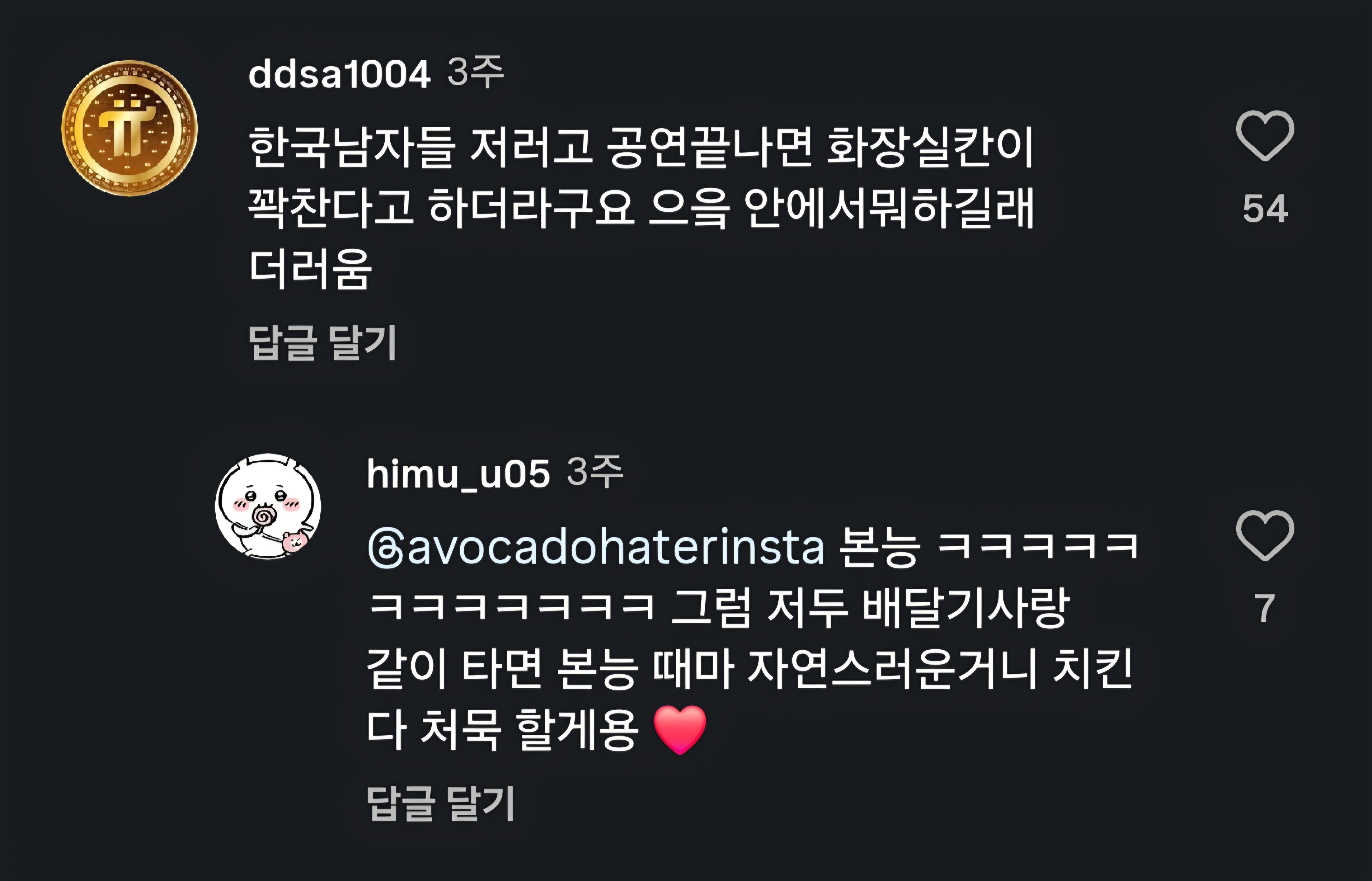해당 릴스 댓글들 몇개 발췌한건데